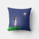 Ein Kissen mit einer Abbildung eines Mädchens, das auf einer windgefluteten Klippe stehend ist und auf einer Seite einen Single flattert. Dreh die andere Seite, und das Mädchen... ist weggegangen =).