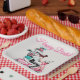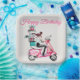 Mädchen auf einem Scooter mit Geschenken Pappteller