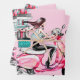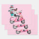 Mädchen auf Scooter, die Präsentationen tragen Geschenkpapier Set