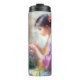 Mädchen bewundert eine Blume in ihren Händen Thermosbecher