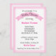 Rosa und weiße Babydusche Einladung zum Bringen eines Buches themed Duschen. Rosa Banner mit Babydusche und Details zur Babydusche. Die perfekte Dusche lädt zu kleinen Mädchen ein.