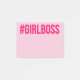 Pink #GIRLBOSS Grafik und hellrosa Post-Itanmerkungen.