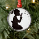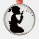 Mädchen, das auf Löwenzahn-Silhouette durchbrennt Silbernes Ornament