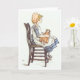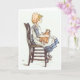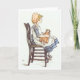 Mädchen, das mit Puppe, Gruß-Karte sitzt Karte