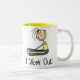 Ein Mädchen-Strichmännchen, das kundengerechte Tasse des Fitnessthemas ausarbeitet.