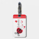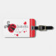 Niedliches Gepäcketikett mit einem fliegenden Ladybug / Ladybird mit Herz in Rot, Schwarz und Weiß. Personalisieren Sie Ihren Namen sowohl auf der Vorderseite als auch auf der Rückseite. Derzeit liest Isabella. Einzigartig gestaltet von Sarah Trett.