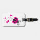 Niedliches Gepäcketikett für Kinder mit einem fliegenden rosa und schwarzen Ladybug / Ladybird mit Herz. Personalisieren Sie Ihre Namen und Adressdaten auf der Rückseite. Einzigartig gestaltet von Sarah Trett.