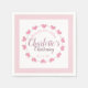 Kleines Mädchen, das Servietten in Weiß mit rosa Rahmen tauft. Das hier gezeigte Design umfasst rosa Herzblütenblätter in einem Ring und Platz für den Namen des Kindes sowie das Taufdatum. Zum Anpassen des dargestellten Textes verwenden Sie die Schaltfläche Personalisieren. Auch für Taufen und Party stehen passende Teller und Tassen zur Verfügung.