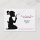 Geschäftskarte zeigt eine süße kleine Silhouette eines Mädchens, das eine Löwenzahn-Blume durchbrennt. Kind knit in einem niedlichen Kleid mit einem Bogen. Ihr Gesicht wird im Profil gezeigt, gleich nachdem sie einen Wunsch gemacht hat.