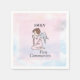 Senden Sie Erste Kommunion Grüße und Wünsche an ein spezielles Mädchen. Das perfekte Geschenk, Souvenir und Geschenk, das ein Mädchen Engel auf dem Design darstellen.