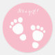 Weiße Abbildung der kleinen Mädchen auf den Füßen ist ein Mädchen, Babyfüßchen-Hintergrund auf der pinkfarbenen Babydusche