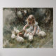 Mädchen Fütternd weiße Kaninchen Impressionistisch Poster
