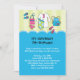 Niedliche und bunte Geburtstags-Party Einladung. Groß für ein Pool-Party oder ein Strand-Party. Kennzeichnet Badeanzug, dreht Reinfälle, Rucksack, Strandkleid und Sonnenbrillen in den hellen Sommerfarben um. Addieren Sie Ihre eigene Benennung.