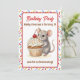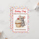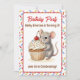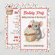 Eine süße Geburtstagseinladung für Mädchen mit einem niedlichen Maus- und Cupcake-Thema. Rosa, beige und kirschrote Streusel auf einem süßen Vanille-Cupcake, der von einer Wasserfarben-Maus gehalten wird!