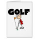 Ein weiblicher Golfspieler und ein Text des Strichmännchens, der "GOLF" liest, wird auf T-Shirts das Golf der Strichmännchenfrauen, Tassen, Taschentaschen, Karten und anderem Golf spielendem Gang gekennzeichnet, den Sie mit einem Namen besonders anfertigen können!