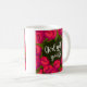 Mädchen got rote und grüne Ziele Kaffeetasse