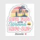 Feiern Sie den Sommer mit diesem spielerischen Aufkleber 'Girls Just Wanna Have Sun'! Dieser Aufkleber mit einer tropischen Strandlandschaft mit Palmen, einem Surfbrett und einer in coolen Schattierungen gehaltenen Sonnenstrahle eignet sich hervorragend, um Ihrem Laptop, Ihrer Wasserflasche oder Ihrem Auto ein Sonnenbad zu bieten. Es ist ein Muss für jeden, der den Strand, die Sonne und alle Dinge im Sommer Lieben.