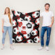 Diese sportliche Fußball-Decke zeigt das realistische Bild einer übergroßen Fußballkugel mit roten, schwarz-weißen Tafeln, auf denen ihr Name, ihre Monogramm- und Jerseynummer personalisiert werden können. Sie überlagert ein Muster aus kleineren roten, schwarz-weißen Fußballbällen und den sportlichen Schriftart-Text "I LIEBE SOCCER", der sich zwischen den verworrenen Reihen der Fußbälle erstreckt - der Hintergrund ist individuell schwarz - katz_d_zynes