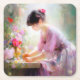 Mädchen im Blumengarten Rechteckiger Pappuntersetzer