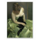 Ein Mädchen sitzt in einem schönen grünen Kleid mit einer schwarzen Katze. Sie beide schauen sehr entspannt. Es ist eine andere Zeit und Platz. Sie sind am Frieden.