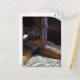 Mädchen in Flannel Shirt knien auf einem Bett Postkarte