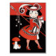 Schwarz, Rot und Weiß zeichnend von einem kleinen Mädchen, das über ihre Schulter schaut, mit einem roten Mantel, Fischnet-Strümpfen, hohen Absätzen und einem extravaganten Hut. Zeichn des italienischen Karikaturisten Antonio Rubino für die Titelseite des Kindermagazins "Il giornalino della Domenica", 1909.