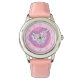 Kinderuhr aus Edelstahl mit rosa Lederarmband