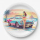 Mädchen mit Auto und Traumwelt Pappteller