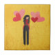 Niedliche Grafik eines Mädchens, das einen Haufen herzförmiger Ballons hält. Niedlich und skurril und gürtlich gegen einen stilvollen, strukturierten goldenen Hintergrund.