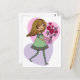 Süße Mini-Kunst einer fantasievollen Mädchenfigur mit langen, fließenden gelben Haaren, die ein grünes Kleid und gestreifte Strümpfe trägt. Sie hält einen wunderschönen Strauß roter Rosen in ihren ausgestreckten Händen. Ursprünglich als digitale Kunst geschaffen, ist dies ein entzückendes Kunstwerk, ideal zum Verschenken an einen Freund oder eine geliebte Person oder für sich selbst, wenn man Mini-Kunst sammelt. Eine erschwingliche und einfache Möglichkeit, die eigene Sammlung um kleine Stücke zu erweitern.