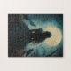 Mädchen mit Krähen im dunklen Rätsel. Zieh es zusammen und hänge es an die Wand.