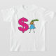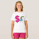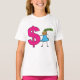 Ein Mädchen, das neben einem riesigen Dollarzeichen stehend ist. Dieses Design sieht auf diesem Girls-T - Shirt wirklich effektiv aus