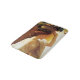 Dieses Design zeigt ein Gemälde des britischen Viktorianischen Künstlers Frederic Leighton (1830-1896). Es zeigt eine schöne Frau, die auf ihrem Kopf einen Obstkorb hält. Sie hat rotes Haar und trägt ein lang fließendes weißes Kleid, das diaphanisch ist. Die Frau wird im Profil gesehen, und sie lächelt sanft. Sie ist von einer Architektur umgeben, die im antiken römischen Stil erbaut wurde.