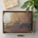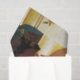 Dieses Design zeigt ein Gemälde des britischen Viktorianischen Künstlers Frederic Leighton (1830-1896). Es zeigt eine schöne Frau, die auf ihrem Kopf einen Obstkorb hält. Sie hat rotes Haar und trägt ein lang fließendes weißes Kleid, das diaphanisch ist. Die Frau wird im Profil gesehen, und sie lächelt sanft. Sie ist von einer Architektur umgeben, die im antiken römischen Stil erbaut wurde.