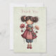 Dankeskarten mit einem süßen Retro-Bild mit einem verspielten Mädchen mit rosigen Wangen und Blumen im Haar. Trägt eine grüne Froschpuppe.