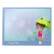 Mädchen mit Frosch Umbrella & Hydrangea Blume Blau Notizblock