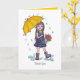 Mädchen mit gelbem Regenschirm in Wasserfarbe Karte