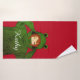 Niedliches Mädchen mit Green Frog Hoody Zeichnend Individuelle Name Bath Towe. Ein niedlicher zeichn eines Mädchens mit einem grünen Froschschwanz auf einem roten Hintergrund. Ein tolles Geschenk zum Weihnachten oder Geburtstag. Füge Deinen Namen hinzu.