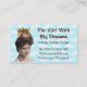 Mädchen mit große Traum-Vintagen Visitenkarte