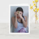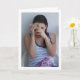 Mädchen mit Handheld Makeup Mirror Portrait Grußkarte. Sie können dieses Produkt ganz einfach kostenlos anpassen, wenn Sie Text hinzufügen oder die Farbe des Hintergrunds ändern möchten.