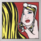Ein schönes, junges blondes Mädchen pustet sich für die Kamera, während sie sich mit ihrem Handy selfie. Eine moderne Version von Roy Lichtensteins 'classic Girl In Mirror'. Weitere originelle und handgemalte Pop finden Sie auf meiner Website: www.jamieleeart.com
