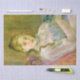 Dieses Design zeigt ein Gemälde des französischen Impressionisten Berthe Morisot (1841-1895). Es zeigt ein hübsches junges Mädchen, das sich auf einem Stuhl entspannt, während sie ihre geliebte Hauskatze hält. Das Tier hat graues Fell. Die ursprüngliche Kunst wurde 1892 von Berthe Morisot gemalt.