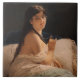 Dieses Design zeigt ein Gemälde des italienischen Künstlers Gerolamo Induno (1825-1890). Es zeigt eine schöne junge Frau, die eine Fahrlässigkeit im Bett trägt. Es gibt Bettwäsche, die ihren Unterkörper bedecken, und sie ruht sich auf einem Kissen aus. Sie trägt eine Halskette mit einer Medaille und hält die Medaille in der Hand. Die Frau schaut direkt auf den Betrachter und lächelt sanft. Sie hat lange braune Haare, die ihr den Rücken abfließen. Sie lehnt sich auf ihre Seite, und ihre rechte Schulter und ihr Arm sind kahl. Es ist ein sinnliches Bild weiblicher Schönheit. Das Originalwerk wurde um 1875 von Gerolamo Induno gemalt.