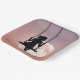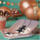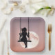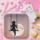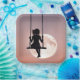 Silhouette Mädchen auf einer Schaukel mit Vollmond in einem rosa Himmel.