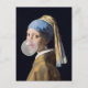 Mädchen mit Perlenohrring, die ein Kaugummi blasen Postkarte