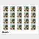 Mädchen mit Perlenohrring mit Ohrhörern Quadratischer Aufkleber