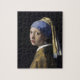 Das Mädchen mit einem Perlenohrring von Johannes Vermeer, 1665, ist ein Ölgemälde auf Leinwand eines jungen Mädchens in einem Dreiviertelprofil, das sich sanft den Kopf dreht und den Betrachter warm anschaut. Das Kopftuchumhüllende und am Kopf hängende Kopftuch wird in sonnigen, kontrastierenden Farbtönen von warmen Gelbtönen und cooler Blues dargestellt, hier ein Ultramarineinfärb oder Cornblumenblau, ein Farbschema, das in vielen Kompositionen des niederländischen Meisters erforscht wurde. Ihr Perlenohrring strahlt sanft in weißem Licht im Zentrum der Komposition. Der rätselhafte Ausdruck des Mädchens wird zeitlos eingefroren in Erwartung eines Lächelns, Lachens oder fragend einer Frage des Betrachters. Johannes (Jan) Vermeer (1632 - 1675) war ein holländischer Meister von Genreszenen im Inneren, dessen Werke im 19. Jahrhundert wiederentdeckt wurden. In sorgfältig konstruierten, geometrischen Kompositionen, die in akribischer Linearperspektive gezeichnet wurden, erforschte Vermeer die Auswirkungen von Licht und Farbe auf menschliche Figuren, Objekte und Texturen in sonnenbeleuchteten, häuslichen Räumen, Gebäude auf die optischen Entdeckungen und 3D-Sichttiefe von Leonardo und der Renaissance. Sowohl Maler als auch Kunsthändler produzierte Vermeer langsam einige seiner mühsam ausgeführten, reich pigmentierten Kompositionen pro Jahr, die ganz in seiner Zuhause-Stadt Delft leben, und verzichtete dabei auf den Ruhm seiner nahen Zeitgenossen Rubens und Rembrandt, den er schließlich in der Moderne erlangte.