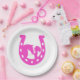 Mädchen mit Pferd und Western-Hut Hot Pink Horsesh Pappteller