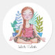 Mädchen mit Pflanze vermitteln Runder Aufkleber