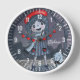 Eine süß-blaugraue Wanduhr mit einem Mädchen, das eine rote Beete trägt und eine Herzgarage hält. (Sie verbreitet Liebe und Freundlichkeit). Ihr niedlicher Hund ist auf der rechten Seite. Ideal für ein Kinderzimmer. Personalisieren Sie es mit dem Namen des Kindes . Weiße Markierungen und Zahlen wurden hinzugefügt, um Kindern das Lesen der Zeit zu erleichtern. © ArianeC Illustrations-Alle Rechte vorbehalten